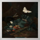 Pintura a óleo de Vintage de Forest Floor Still Life por Karl Wilhelm De Hamilton, 1735. Ilustrando a relação entre borboleta e cobra: Prey Vs. Predator. A borboleta é um exemplo clássico de presa, pequena, frágil e sem defesas naturais contra predadores. O cobra, por outro lado, é um predador com a capacidade de se mover rapidamente e atacar com extrema precisão. Uma imagem tão poderosa que fala sobre a beleza e a complexidade do mundo natural.