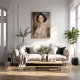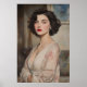 Este retrato cativo da aquarela exumenta um ar de alura e glamour eternos inegáveis. Uma linda jovem, com seu cabelo escuro curto enfeitando seu rosto, é representada de lado, sua cabeça ligeiramente virada para conhecer o olhar do artista. Ela veste um elegante vestido de cor creme, de baixo corte, com um padrão sutil. Os seus olhos sujos são intensamente engajados, complementados por bochechas enroladas e batom vermelho vivo, criando um olhar de encanto confiante e cativante. Esta peça é uma celebração da ousada feminilidade e presença magnética.