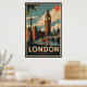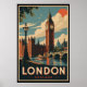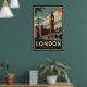 Step into the charm of classic travel with this vintage London travel poster, inspired by iconic 1930s–1940s Art Deco design. Featuring the famous Big Ben clock tower and the historic Houses of Parliament, this artwork captures the timeless beauty of London with bold geometric shapes, dramatic lighting, and a refined retro color palette.