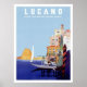 Uma poster de viagens vintage convidando-o a visitar Lugano na Suiça Sul pelo artista Leopoldo Metlicovitz. Lugano situa-se na zona de língua italiana de Ticino, que faz fronteira com a Itália. A cidade fica no lago Lugano e está cercada por montanhas. Metlicovitz era pintor e retratista que não tinha treinamento formal. Tornou-se um dos maiores poster artistas italianos.