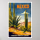 Esta bela imagem é uma reimpressão de uma viagens vintage de poster para o México. No primeiro plano estão as plantas de cacto e de agave que o México conhece e à distância que vemos uma cidade de prédios lavados com telhados de azulejo vermelho.