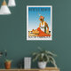 Um poster retrô que nunca foi até agora. Um refazer criativo de um velho poster que deveria ter sido. Myrtle Beach no estilo retrô da era da arte deco. Cor brilhante com uma mulher na praia sob um céu azul.