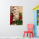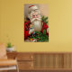 Um poster de natais vintages encantador com um bom e velho Pai Natal com uma boneca cercada por ramos de abeto.