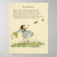 Um poema de vintage intitulado "A Borboleta" é impresso neste poster, juntamente com uma ilustração de uma garotinha correndo em um campo perseguindo borboletas. O poema diz, "Flor, flauta, borboleta, voa alto, para cima! para cima! no céu azul brilhante, Flicker e mergulho, e brilho e flutuação, Seu ouro veleja como um barco de fada! Ou se afaste através do azul profundo e profundo, e o bebê vai rir e seguir você!"