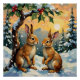 Pôster Vintage Rabbits Beneath the Holly Tree Christmas