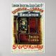 • This high-quality retouched illustration is a vivid reproduction of a classic pre-1929 advertising poster. This bold, early Edwardian lithograph features a train compartment window with a railway guard peering out over the large, colorful fare text.