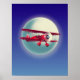 Vintage Red Biplane passando por uma bela lua de cheio.