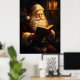 POSTER do Papai Noel estilo VIntage lendo um livro à luz de velas