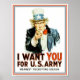 Vintage Tio Sam Eu Quero Que O poster do Exército apoie nossas tropas heróis militares e operações