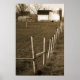Um amante do rancho apreciará o Impressão Poster de Vintage White Barn, rústico e cênico. Este poster de país personalizado apresenta uma fotografia fazenda melhorada digitalmente de um antigo e histórico celeiro branco e silo com uma cerca de arame farpado de madeira e prados no primeiro plano localizado na zona rural do Centro-Oeste do Illinois.