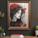 Poster Vintage Woman e Red Papoilas Botanic