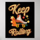 O design de patinagem. Esta engraçada design de patinagem legal lê continua rodando. Excelente para todos que amam roupas de patinação de 70 s. Perfeito para todos os amigos deste esporte recreativo ou fã de dança numa discoteca de 1970 da velha escola