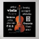 Uma bela Viola é cercada pela palavra viola numa miríade de línguas diferentes e uma Alto Clef.