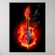 Ilustração gráfica do violão de fogo sobre fundo preto. f