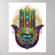 Poster Violet Green Gold Petals Hamsa Turquoise Third Eye