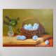Adicione alguma cor às suas paredes com Violetas e Cesto de Ovos de Abuela Raquel. Essa foi a vida ainda mais desafiadora pintada por Raquel — com as variadas texturas do cesto e da madeira, além da fluidez do ovo. As flores do lado esquerdo são violetas - uma de suas flores favoritas - que ela escolheu de seu jardim. Raquel passou por seis ovos para fazer esta pintura, porque ela queria que ela tivesse uma aparência muito realista. A madeira saiu tão bem por engano. Ela estava tentando apagar seu trabalho inicial no conselho de corte, e o resultado parecia ainda melhor. Às vezes, o que parece um erro pode levar a algo melhor!