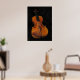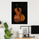 Esta poster apresenta uma vida estática clássica de um velho violino elegante. Este instrumento gracioso é essencialmente uma caixa de madeira oca com extremidades arredondadas, dois buracos graciosos e um centro estreito. Os quatro conjuntos de cordas estendem-se de um suporte de cordas na parte inferior do corpo sobre uma ponte elevada até a extremidade do pescoço estreito, ou da placa do dedo, onde as quatro cordas são inseridas em uma pegbox e são mantidas com pegs. Os pinos são usados para ajustar o violino. Quando o arco é desenhado através das cordas no corpo do violino, ele produz uma música incrível e mágica! Os belos tons marrom-ouro, quase alaranjados, são disparados por um tecido preto de veludo gracioso.