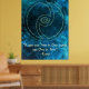 O símbolo do olho do solteiro emana da clareza na sua posição central. As linhas geométricas deixam espaço para que surjam visões. A arte expressa pelo design é uma ferramenta simples de se usar uma meditação brilhante. O espaço dentro das linhas geométricas ajuda a ficar sintonizado com a orientação da intuitiva voz interna. A arte é um ímã para o bem-estar e um melhorador da vida quotidiana para os espaços domésticos e terapêuticos/de trabalho criativo. Mão desenhada e fundida em suportes mistos, impressa em ouro mais claro sobre fundo azul do enfumaçado.