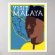 Poster de viagens de ilustração do estilo Vintage Art Deco para a Malásia, parte da Malásia atual. posters viagens vintage nos dão uma olhadela nostálgica ao estilo idealizado, à moda, ao transporte e aos destinos favoritos do passado.