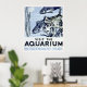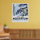 Poster promovendo o aquário no Parque Fairmount como um lugar para visitar, mostrando peixes.