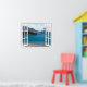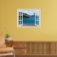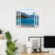 Linda vista calma do lago da montanha, cena falsa da janela, para um escritório sem janelas. Poster de ilusão óptica de paisagem muito realista que pareceria excelente em um escritório ou uma parede de estudo.