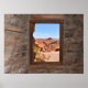 Vista de cabana dentro do Vale do Fogo, olhando para o brilhante arenito aztec vermelho no parque estadual. Personalização de 100%. Clique no botão PERSONALIZAR para adicionar, mover, excluir, redimensionar ou alterar qualquer uma das fontes ou gráficos.