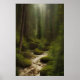 Bela impressão de poster de arte digital fotorealista de um riacho que corre através de uma floresta exuberante. Imagem criada usando o software AI
