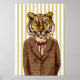 Este design apresenta um tigre vestindo uma jaqueta inteligente e uma gravata vermelha de arco.
