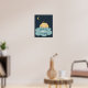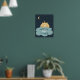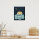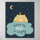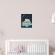 Decore o berçário do seu pequeno precioso com este adorável kit de gato fofo moderno escandinavo usando uma coroa em uma nuvem em um fundo azul escuro com o pôster de citação inspirador procure a magia no cotidiano. © Julie McIver
