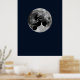 Um saltador de motocross voando pelo ar silenciado pela lua de cheio.