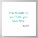 "O problema é que você acha que tem tempo." Verdadeira sabedoria de Gautam Buddha - uma bela e motivacional citação sobre a realidade do tempo, e a nossa tendência de tomar tempo como garantido. Um poster motivacional para as paredes, quarto, escritório, gabinete, dormitório. Faz um presente de excelente para amigos e família, para graduação, aniversário, natal, feriados e muito mais.