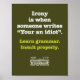A gramática é importante ao lançar insultos. Mostre seu apoio para gramática adequada onde todos possam vê-la!