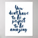 Poster Você não precisa ser perfeito, motivacional Marinh