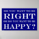 Você Quer Estar Certo Ou Quer Estar Feliz? design sobre fundo azul.