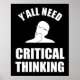 Vocês todos precisam de pensamento crítico. Esta engraçada variação de citação do meme 'Ciência de Todos Necessidades' é um presente excelente para um pensador crítico, amante da ciência, cético, libertador, ateu, agnóstico ou apenas alguém que não tem medo de fazer perguntas. Se você é uma pessoa cética com uma mente questionadora, é um pensador livre, e você não acredita em tudo o que lhe é dito, esta design é para você!