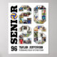 Personalized senior sports photo collage for athlete and sports player. This customizable photo gift is perfect for senior night, sports award banquet or birthday gift for your athlete son, daughter or student. It's a great way to display precious moments and memories from their sports games. The poster features a collage of photos, and it can be customized with names, player jersey number, school teams or any custom text. It makes a unique and meaningful gift for your team.