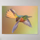 Impressão com um beija-flor-coroa-coroa voando em uma floresta equatoriana de nuvens. Foto de Guango Lodge, Papallacta, Equador.