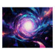 Uma cena cósmica mesmerizante de um vórtice giratório no espaço, cheio de cores vibrantes e corpos celestes, evocando um senso de maravilha e exploração.