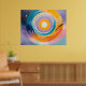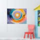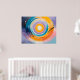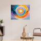 Este vibrante desenho abstrato captura a essência de uma dança cósmica, apresentando um vórtice giratório de cores centrado em torno de um núcleo radiante como o sol. Camadas de azul, roxo, laranja e amarelo se misturam perfeitamente, criando uma sensação de profundidade e movimento. Ela evoca o sentimento de ser atraído para o coração de um fenômeno celeste, onde o calor de uma estrela encontra a legal extensão do espaço. Para aqueles que apreciam designs ousados e contemporâneos com tema celeste.