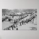 Movimento de sufrágio feminino marchando no Capitólio em Washington, D.C., 1916. Foto antiga do direito de voto mostrando carros antigos e manifestantes.