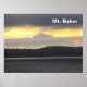 Uma vista do Monte Baker vulcânico. Localizado na área de cascata perto de Bellingham, Washington. A leitura de texto "Mt. Baker" também é exibida. De uma foto tirada pelo artista. Conhecido como Koma Kulshan (sentinela branca) por uma tribo Nativa Americana, o Monte Baker domina o horizonte de Bellingham, Washington, e Vancouver, Colúmbia Britânica. A 10.781 pés, é a terceira montanha mais alta do Estado de Washington e a quinta mais alta da Cordilheira em Cascata. Ela é visível de grande parte da Grande Vitória, Grande Vancouver, e, ao sul, de Seattle (e em dias claros Tacoma). Em dias frios e claros de inverno, aumentos dramáticos na ascensão de fumaça contínua de Sherman Crater podem alarmar residentes locais. Esse aparente aumento no vigor da pluma ocorre devido à condensação de vapor em ar frio e calmo. A montanha, um estratovolcano isolado, é a mais fortemente glaciada dos vulcões da Cordilheira de Cascata depois do Monte Rainier. O Monte Baker Ski Area estabeleceu o recorde mundial de queda de neve registrada em uma estação de solteiro — 1.140 pol. Mt. Baker tem a segunda cratera termicamente ativa na Gama de Cascata após o Monte Santo Helens. Enquanto o vulcanismo persistiu aqui por cerca de 1,5 milhão de anos, o cone glaciado atual não deve ter mais de 140 mil anos, e possivelmente não mais de 80-90 mil anos. As edificações vulcânicas mais antigas têm se erodido devido à glaciação. O Monte Baker tem sido muito ativo nos últimos 10.000 anos e entrou em erupção 13 vezes na história registrada. Sua última erupção foi em 1880. Em 1975-6 ocorreu uma libertação de vapor, mas nenhuma erupção se seguiu a este acontecimento. O primeiro registro escrito da montanha é do espanhol. O explorador espanhol Gonzalo Lopez de Haro mapeou-o em 1790 como o Gran Montaña del Carmelo (Excelente Monte Carmel). O explorador George Vancouver renomeou a montanha para o 3º Tenente Joseph Baker da HMS Discovery, que a viu em 30 de abril de 1792.