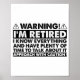 Poster Warning Im Retired Funny Retirement Retiree