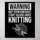 Warning - May Spontaneously Start Talking About Knitting. This funny & cute knitting design would be a great knitting lover gift for the knitter in your life. Perfect for men, women, girls, boys, teens & kids who love to knit & craft and love yarn! If knitting is your hobby, you're a yarn lover and you love crafting with knitting needles and balls of yarn, then this knitter accessory is for you!