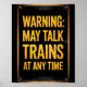 Poster Warning_ May Talk Trains _ Funny Model Train Sayin