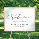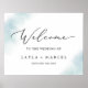 Esta poster de boas-vindas azul de lavagem de água é perfeita para um casamento moderno. O design simples e clássico apresenta um salto de cor azul-clara-pastel com estilo elegante minimalista. Personalize a placa com o nome da noiva e noiva, e a data do casamento.