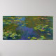Oscar-Claude Monet (14 de novembro de 1840 - 5 de dezembro de 1926) era pintor francês, fundador da pintura impressionista francesa e o praticante mais consistente e prolífico da filosofia do movimento de expressar as suas percepções antes da natureza, especialmente quando aplicada à pintura da paisagem aérea. O termo "impressionismo" deriva do título de sua pintura Impressão, levante soleil (Impressão, Assalto do Sol), que foi exibida em 1874 na primeira das exposições independentes montadas por Monet e seus associados como alternativo do Salão de Paris. A ambição de Monet de documentar o campo francês o levou a adotar um método de pintura da mesma cena muitas vezes para captar a mudança de luz e a passagem das estações. A partir de 1883, Monet morou em Giverny, onde comprou uma casa e uma propriedade e iniciou um vasto projeto paisagístico que incluía lagoas de lírios que se tornariam os sujeitos de suas obras mais conhecidas. Começou a pintar os lírios-d'água em 1899, primeiro em vistas verticais com uma ponte japonesa como característica central e, mais tarde, na série de pinturas em larga escala que o ocuparia continuamente nos próximos 20 anos de sua vida. Citação: Wikipedia