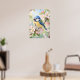 Poster Watercolor Blue Tit Bird on Apple Tree Spring