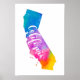 Esta design apresenta uma ilustração do estado da Califórnia em aquarelas.