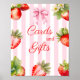 Add a sweet and charming touch to your baby shower table with this Watercolor Strawberries Baby Shower Cards & Gifts Poster. Designed with delicate strawberries and a soft pink stripe background, this sign is perfect for displaying where guests can place their cards and gifts.