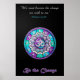 My favorite quote of all time by Mahatma Gandhi. Be the Change. On glossy black with the beautiful purple and turquoise Independence Mandala with a silver OM symbol and a yin-yang at the center, containing the 12 signs of the zodiac and Universal symbols for peace, energy and balance.